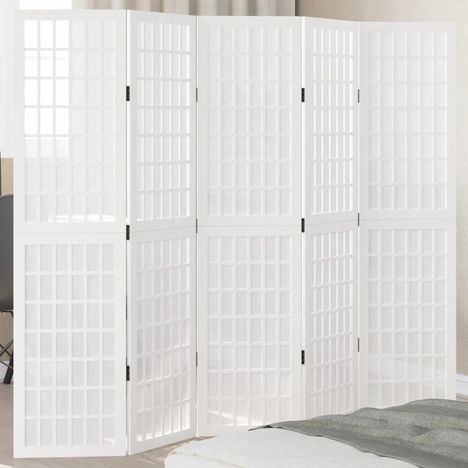 Cloison de separation 5 panneaux blanc bois de paulownia massif