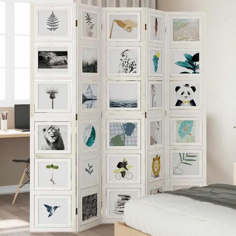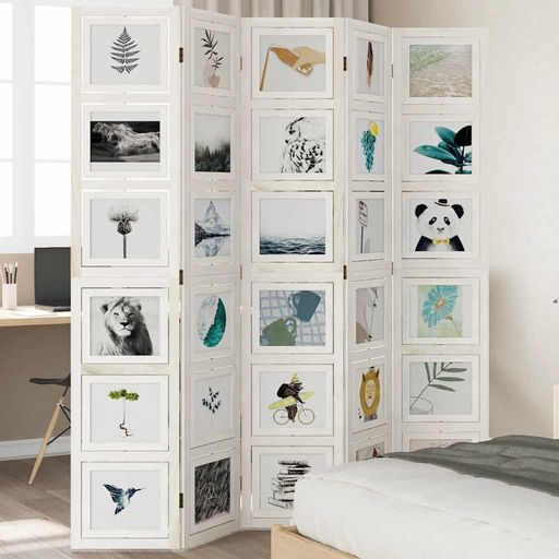 Cloison de separation 5 panneaux blanc bois de paulownia massif