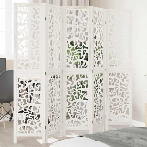 Cloison de separation 5 panneaux blanc bois de paulownia massif