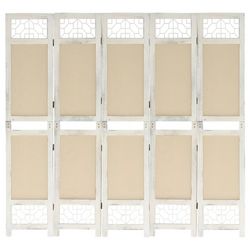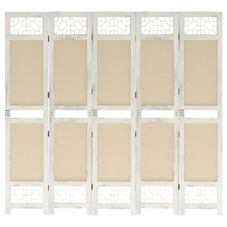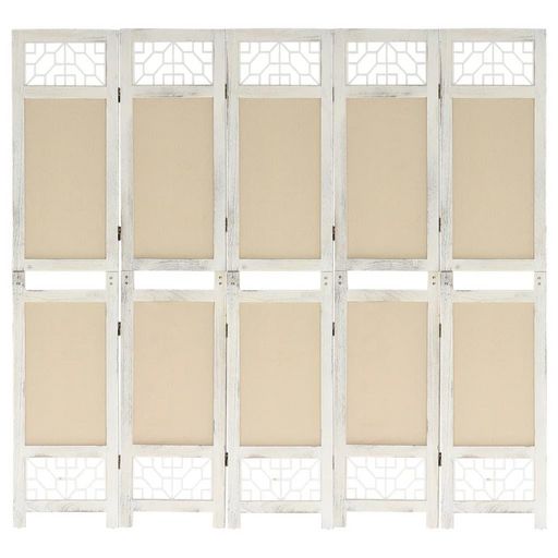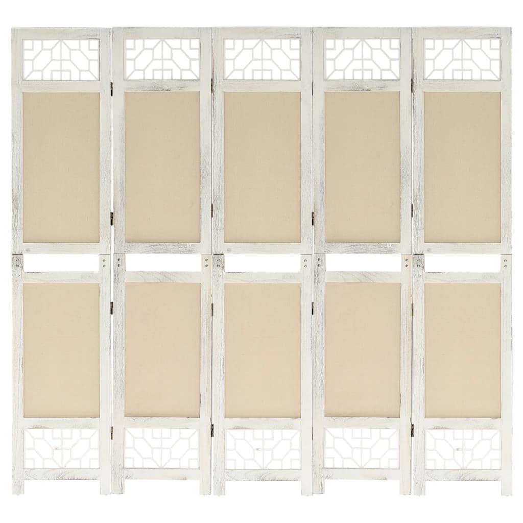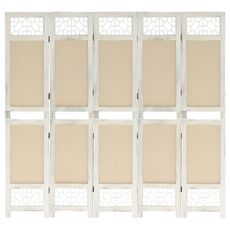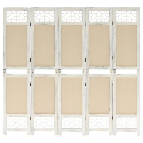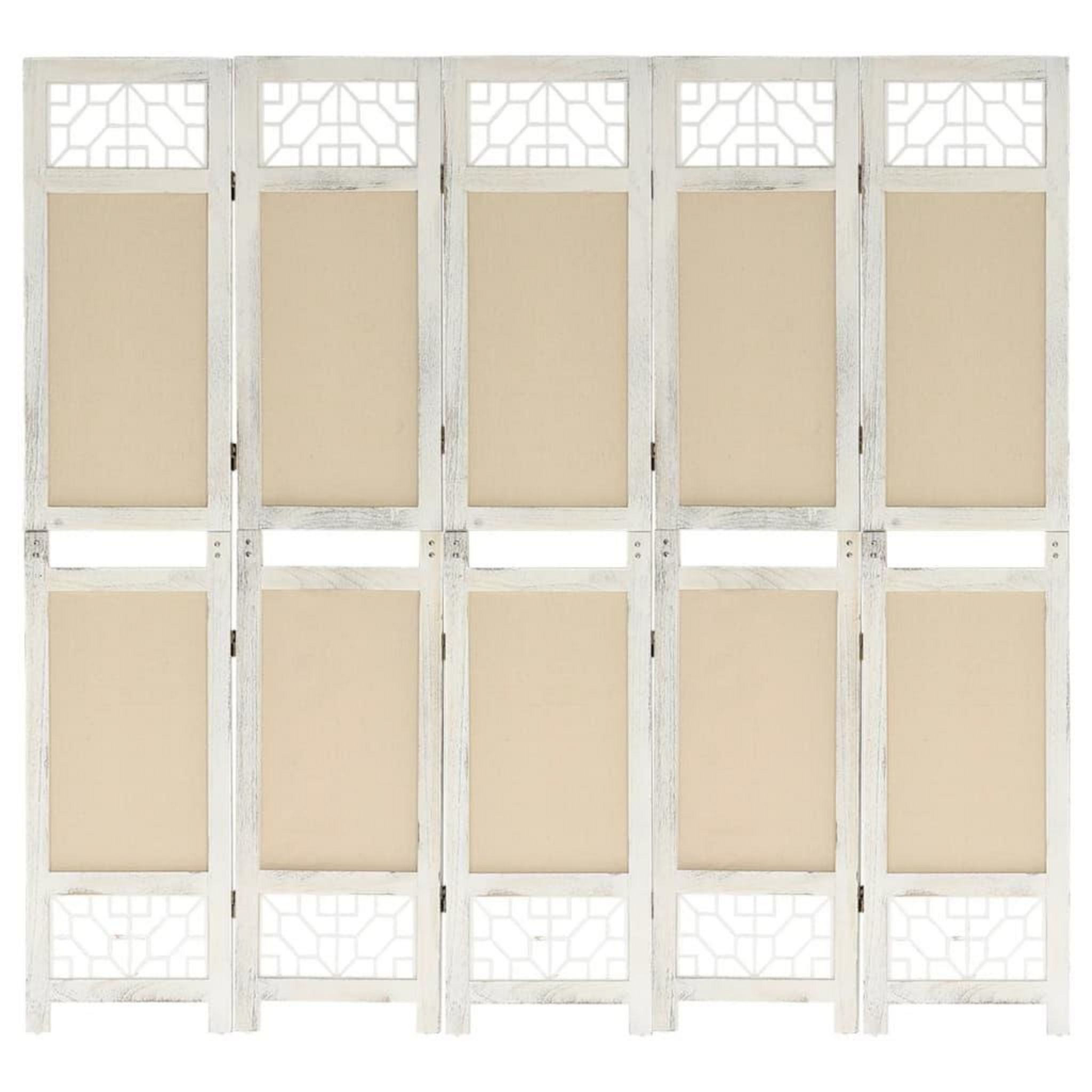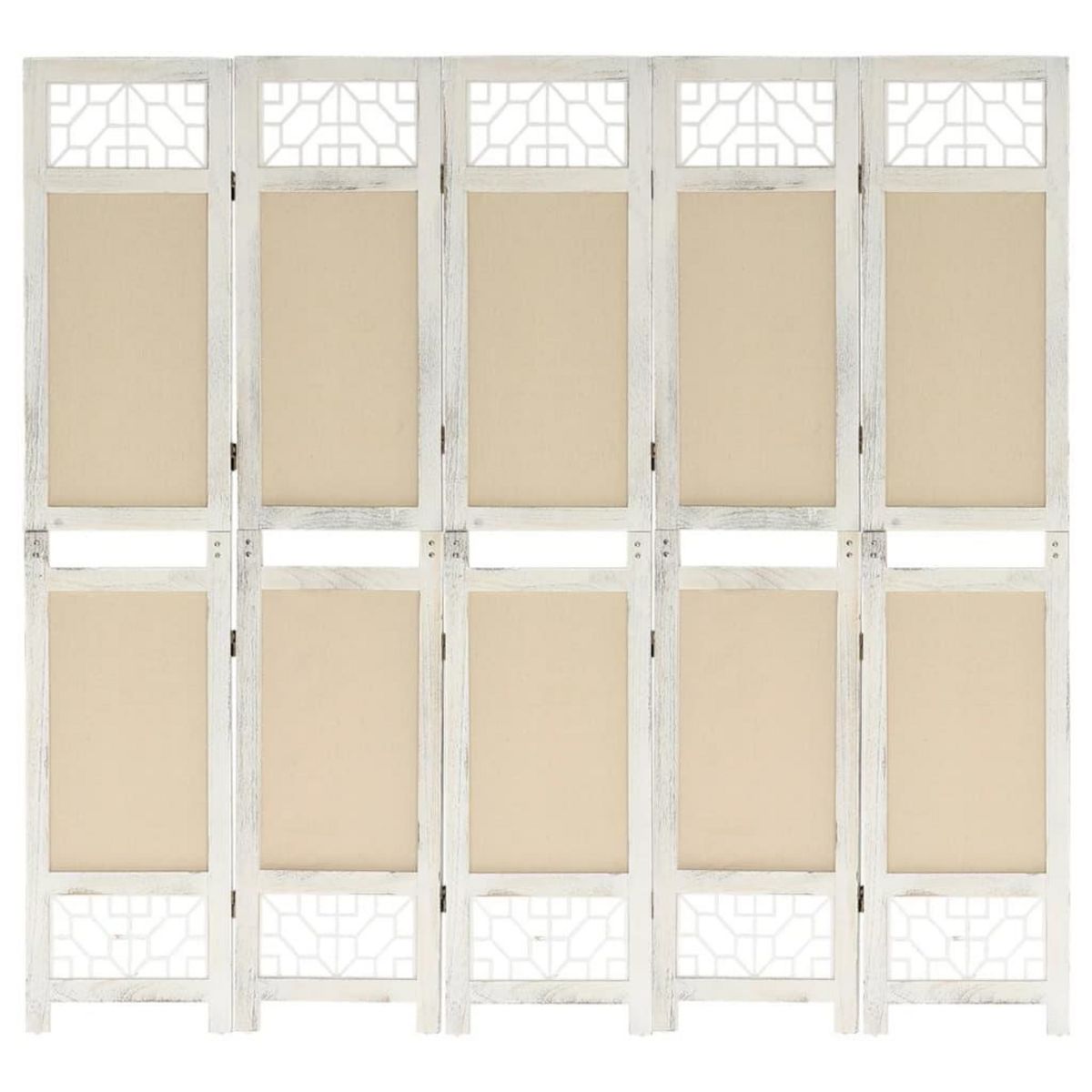 Cloison de separation 5 panneaux Creme 175x165 cm Tissu