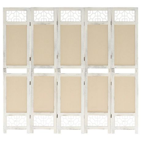 Cette cloison de separation autoportante et elegante a 5 panneaux peut etre utilisee pour la decoration ou comme cloison. Elle est parfaite a placer dans la chambre a coucher pour creer un espace de rangement separe et prive ou pour separer une partie d'une piece. De plus, la cloison de separation dispose d'un cadre en bois de paulownia et en MDF resistant et est recouvert d'un tissu durable. Elle peut egalement etre facilement pliee pour economiser de l'espace lorsqu'elle n'est pas utilisee.