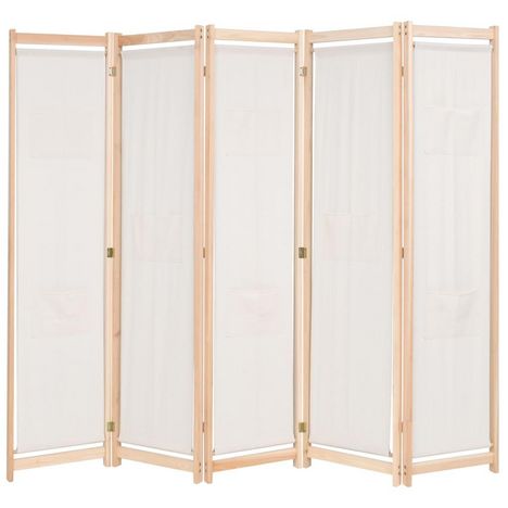 Cloison de separation 5 panneaux Creme 200 x 170 x 4 cm Tissu