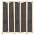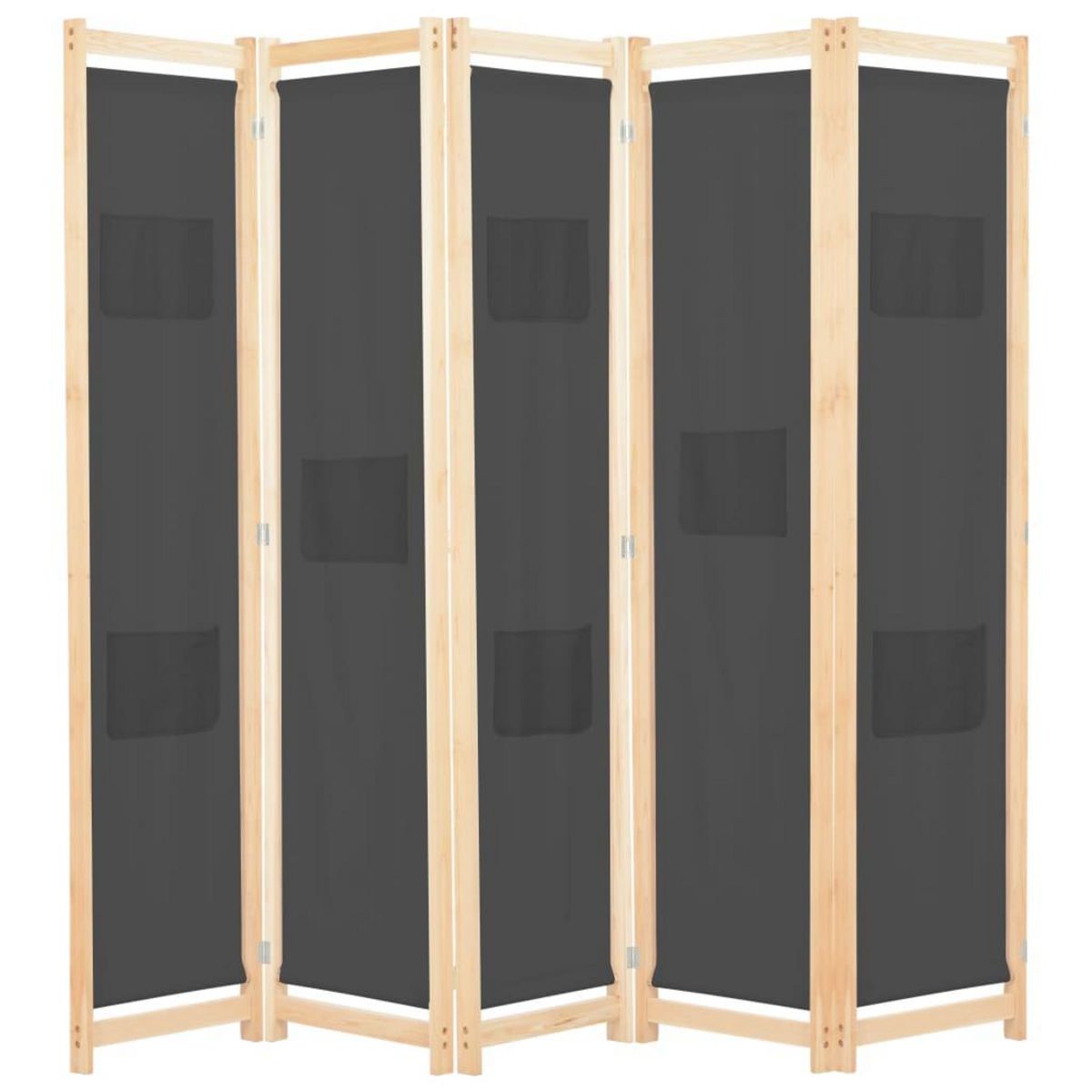 Cloison de separation 5 panneaux Gris 200 x 170 x 4 cm Tissu