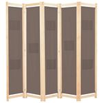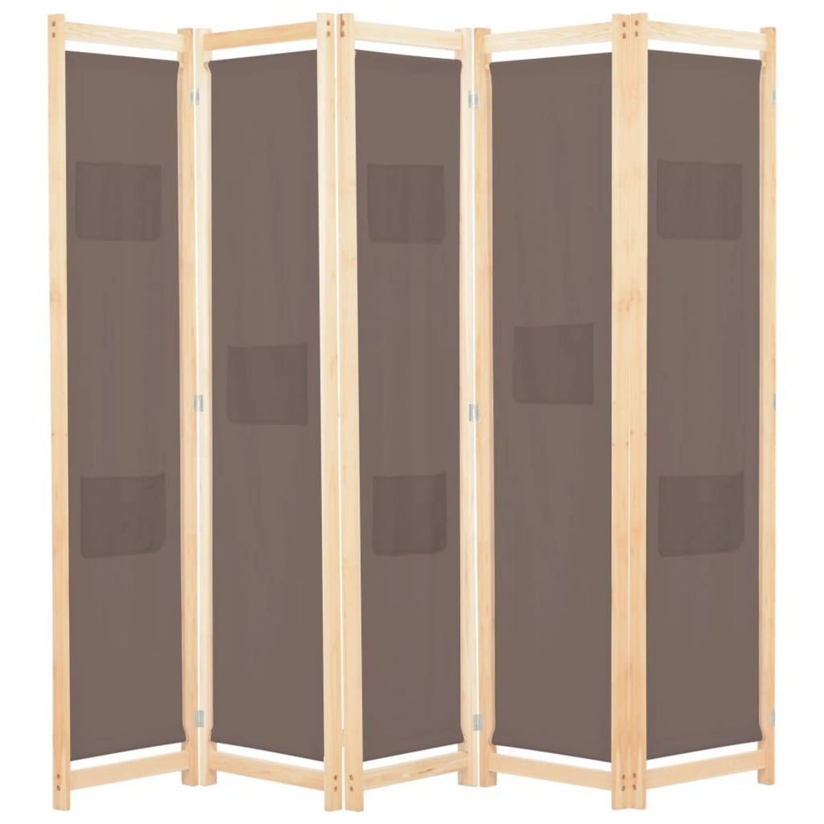 Cloison de separation 5 panneaux Marron 200 x 170 x 4 cm Tissu