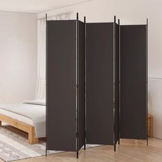 Cloison de separation 5 panneaux Marron 250x220 cm Tissu