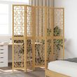 Cloison de separation 5 panneaux marron bois paulownia massif