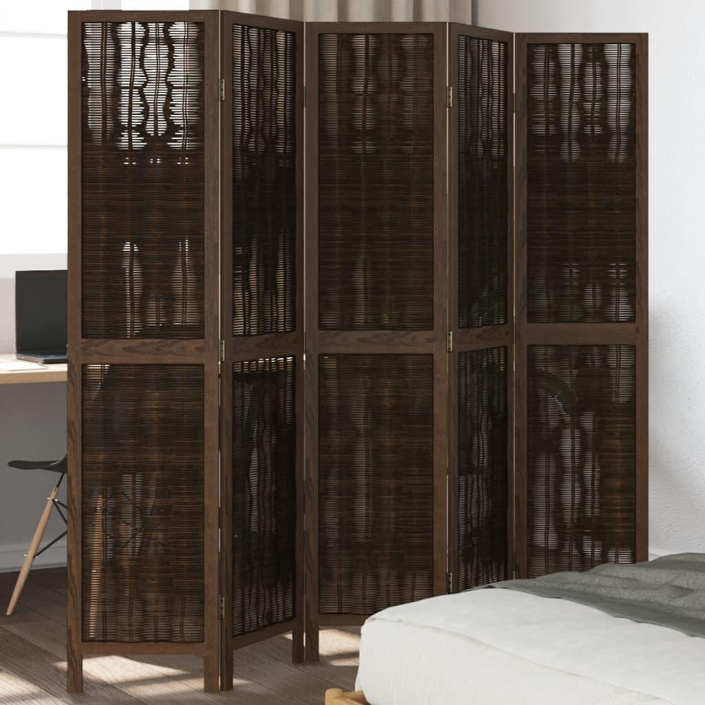 Cloison de separation 5 panneaux marron fonce paulownia massif