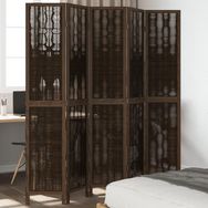 Cloison de separation 5 panneaux marron fonce paulownia massif