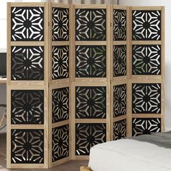 Cloison de separation 5 panneaux marron noir paulownia massif