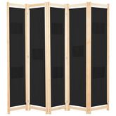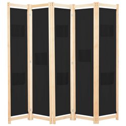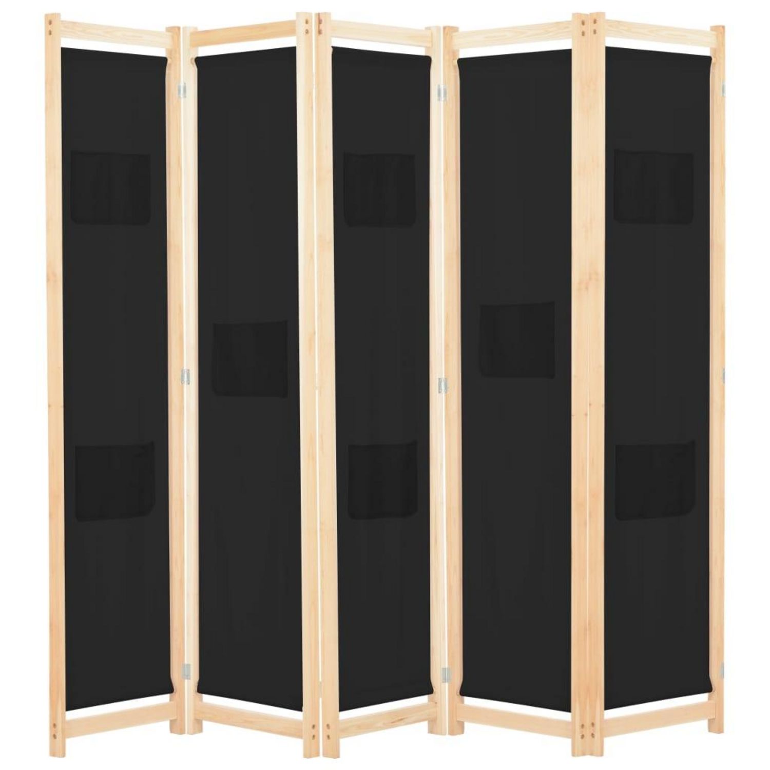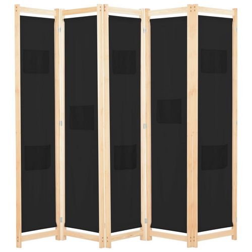 Cloison de separation 5 panneaux Noir 200 x 170 x 4 cm Tissu