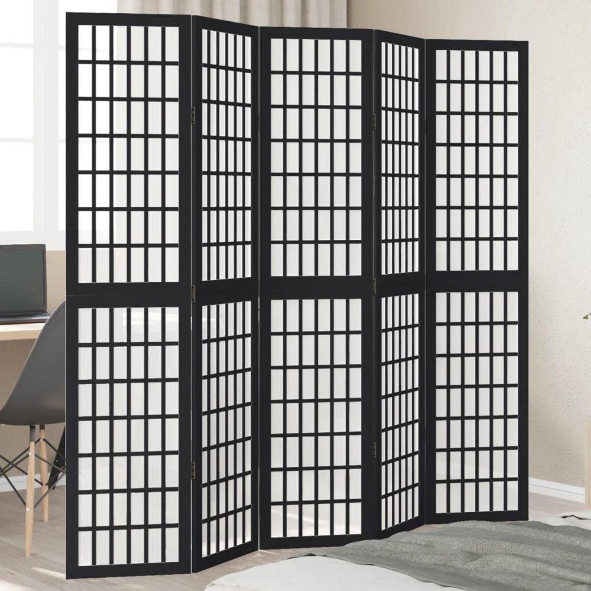 Cloison de separation 5 panneaux noir bois de paulownia massif