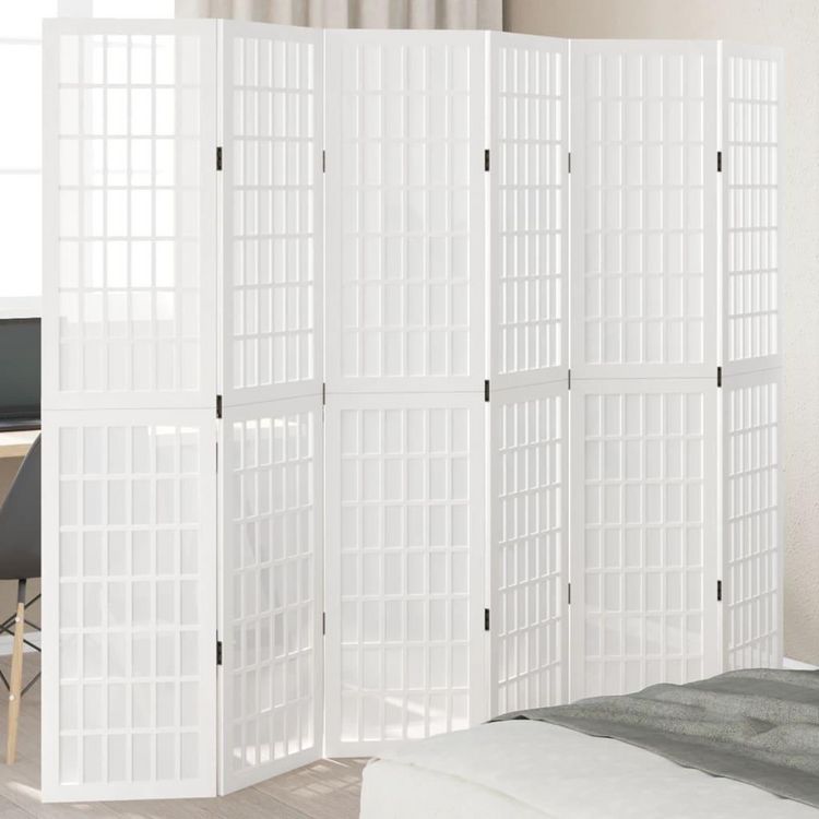 Cloison de separation 6 panneaux blanc bois de paulownia massif
