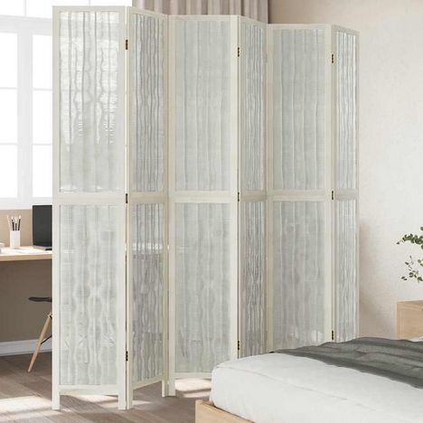 Cloison de separation 6 panneaux blanc bois de paulownia massif