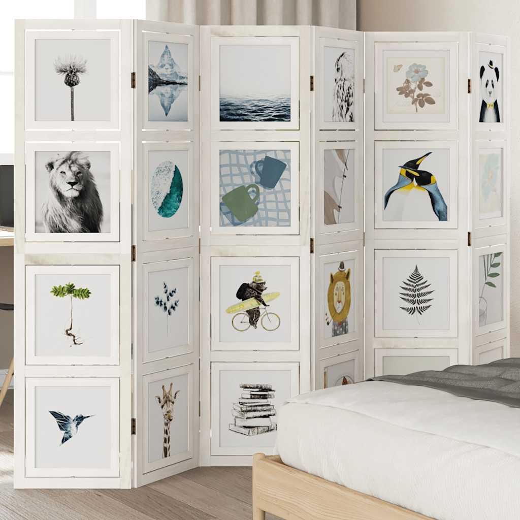 Cloison de separation 6 panneaux blanc bois de paulownia massif