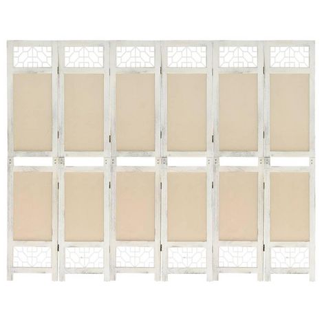 Cloison de separation 6 panneaux Creme 210x165 cm Tissu