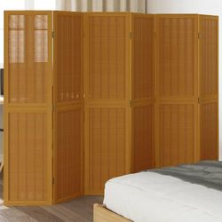 Cloison de separation 6 panneaux marron bois paulownia massif