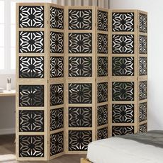 Cloison de separation 6 panneaux marron noir paulownia massif