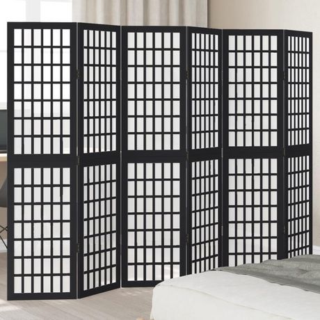 Cloison de separation 6 panneaux noir bois de paulownia massif