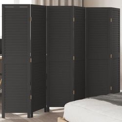 Cloison de separation 6 panneaux noir bois de paulownia massif