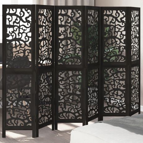 Cloison de separation 6 panneaux noir bois de paulownia massif