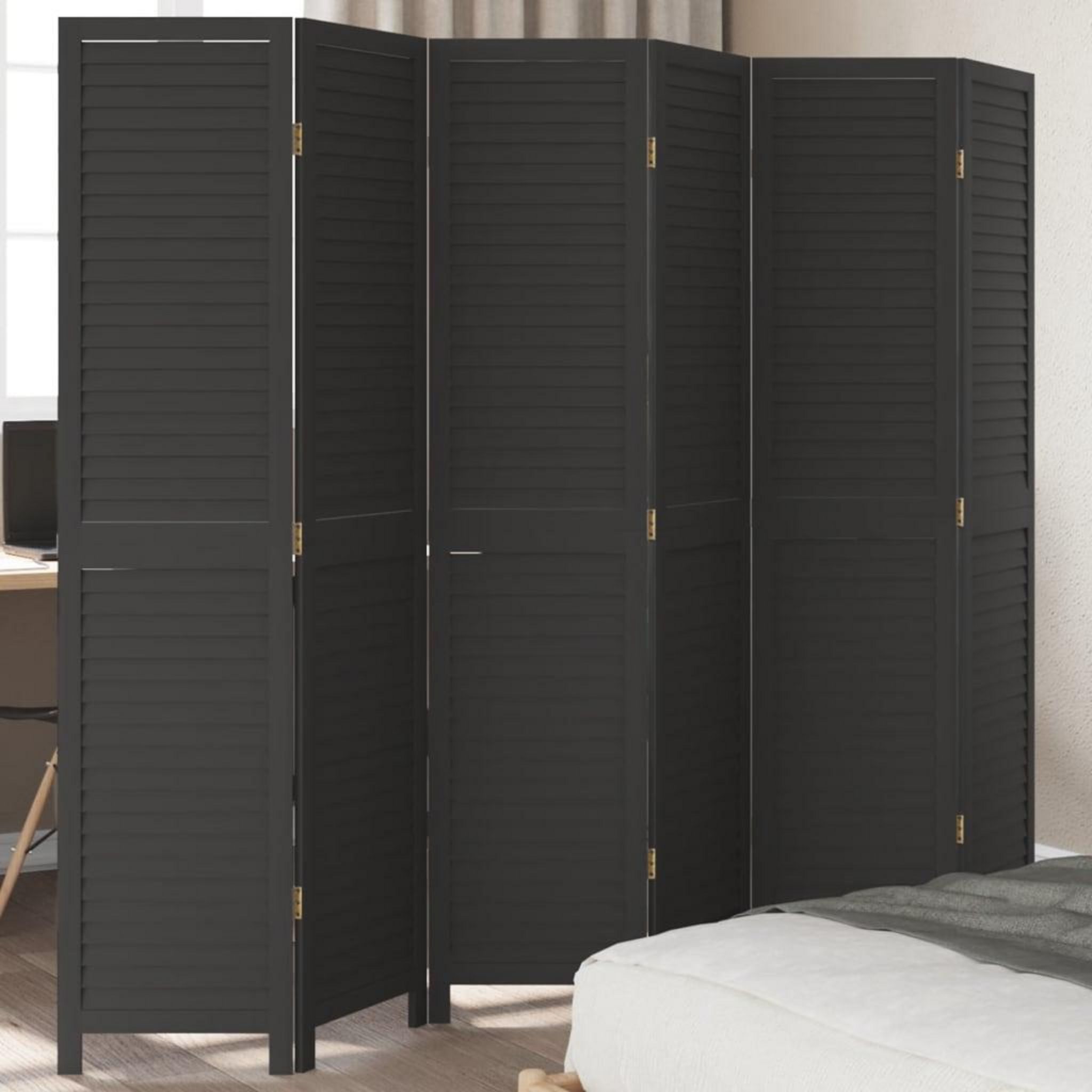 Cloison de separation 6 panneaux noir bois de paulownia massif