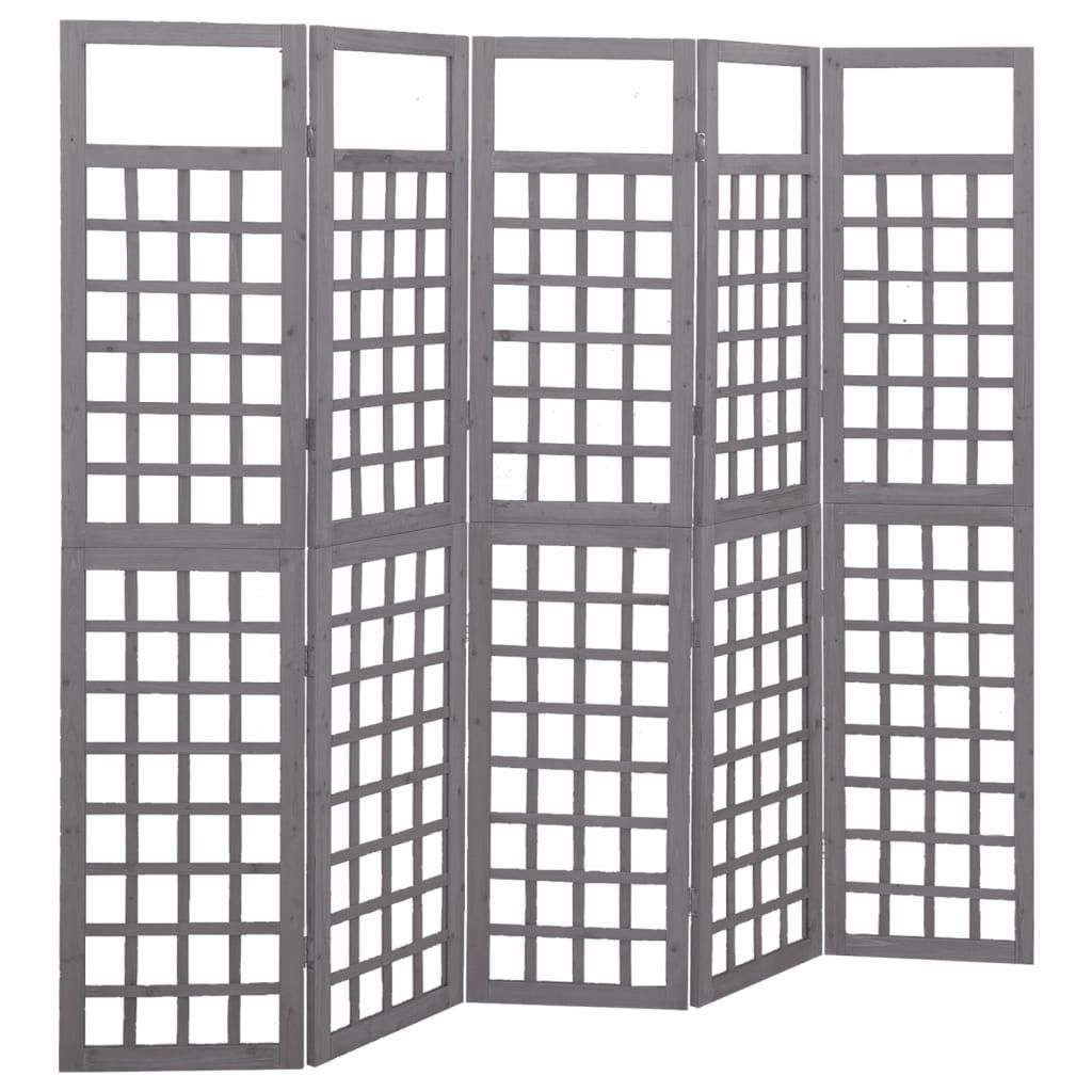 Cloison de separation a 5 panneaux Bois de pin Gris 201,5x180cm