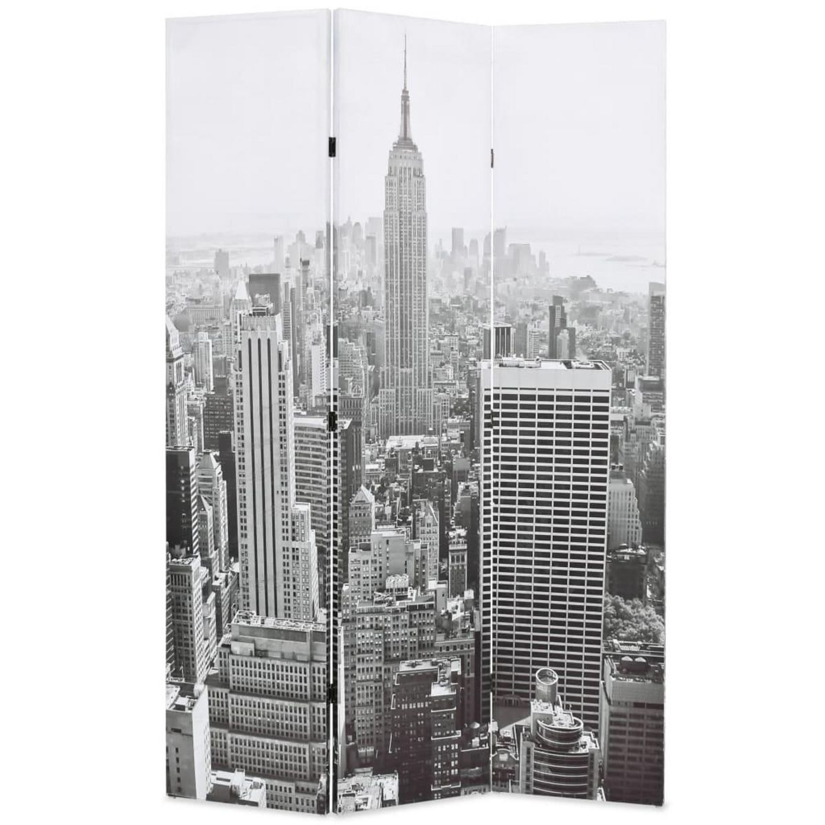 La cloison de separation a un cadre en bois solide et est recouverte de toile resistante avec une impression photo spectaculaire representant une vue de jour de New York et le magnifique Empire State Building en noir et blanc et ajoutera une touche de charme moderne a votre interieur. La cloison de separation de piece peut egalement etre facilement repliee pour economiser de l'espace lorsqu'elle n'est pas utilisee.
