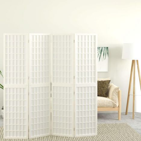 Cloison de separation pliable 4 panneaux 160x170 cm Blanc