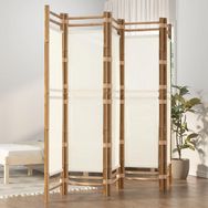 Cloison de separation pliante 5 panneaux 200 cm Bambou et toile