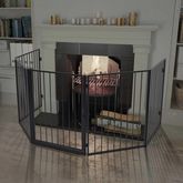 Avec cette cloture de cheminee simple mais elegante, vous pouvez profiter d'un bon feu sans avoir a vous soucier de la securite de votre animal de compagnie, mais elle peut egalement etre utilisee pour eriger une barriere stable autour d'un gril ou d'un poele. On y accede par une porte pivotante pra