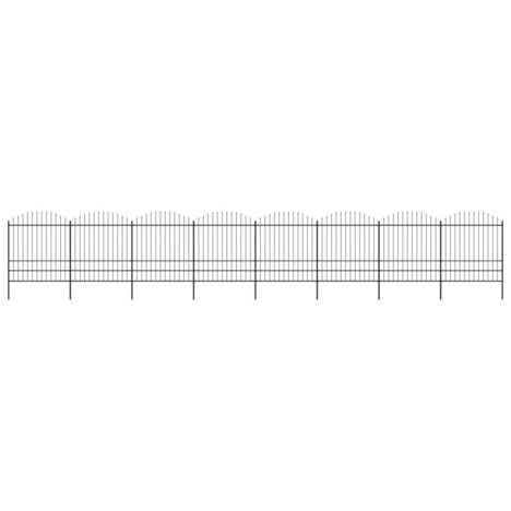 Cloture de jardin a dessus en lance Acier (1,75-2)x13,6 m Noir
