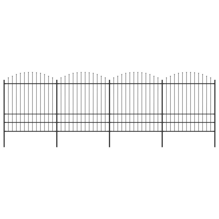 Cloture de jardin a dessus en lance Acier (1,75-2)x6,8 m Noir