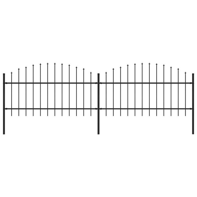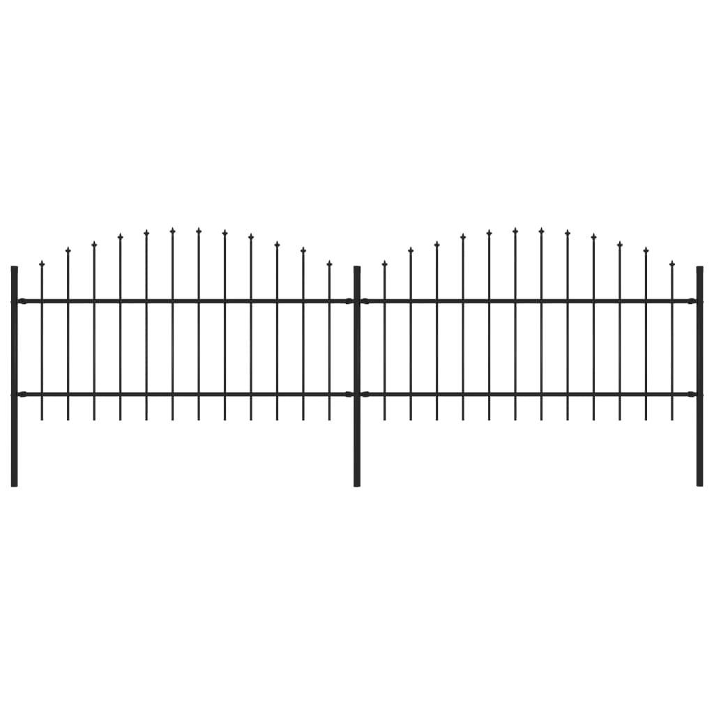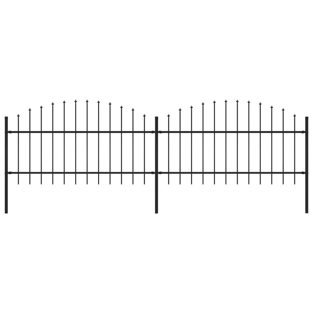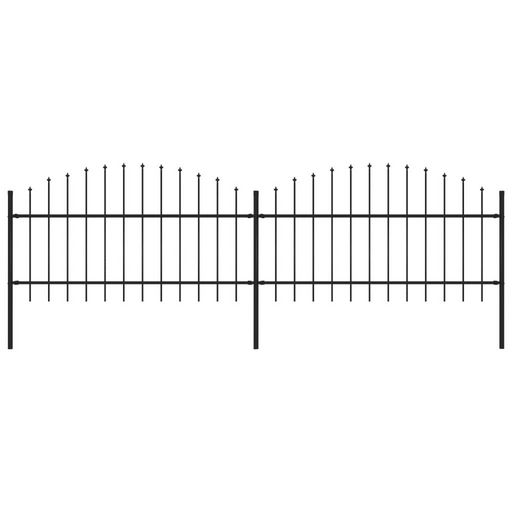 Cloture de jardin avec dessus en forme de lance en acier 359 x 125 cm Noir