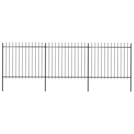 Cloture de jardin avec dessus en lance Acier 5,1 x 1,5 m Noir