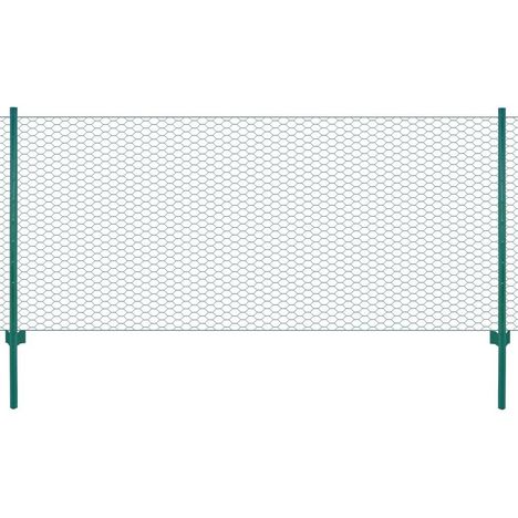 Cloture en grillage metallique avec poteaux Acier 25x0,5 m Vert