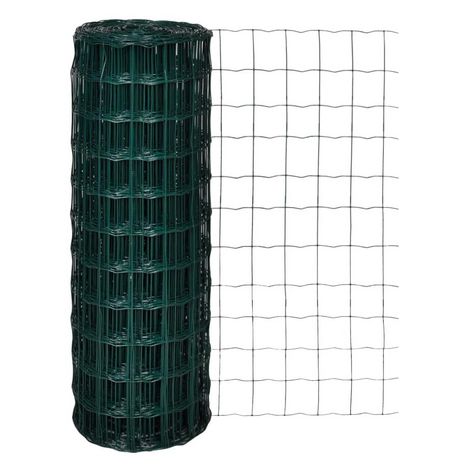 Cette cloture euro peut etre employee comme cloture, decoration ou protection ordinaires pour la volaille, les chiots ou les equipements dans le jardin, l'industrie, la ferme, le transport, etc. C'est une cloture euro de haute qualite. Le revetement en PVC noir verdatre du fil d'acier rend la clotur