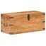 Ce coffre est en bois d'acacia massif, ce qui le rend stable et durable. Il a un loquet sur le devant et deux poignees sur le cote pour soulever le coffre. Cette boîte de rangement, avec un dessus plat stable, peut egalement etre utilisee comme banc d'entree. Le savoir-faire artisanal et les belles veines du bois rendent chaque meuble unique et legerement different l'un de l'autre.