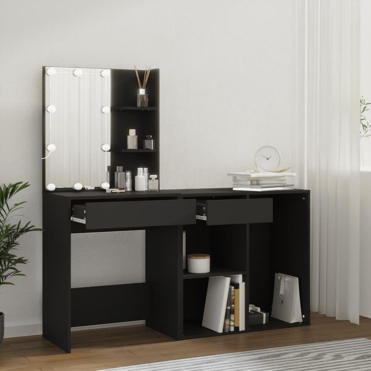 Coiffeuse a LED avec armoire noir bois d'ingenierie