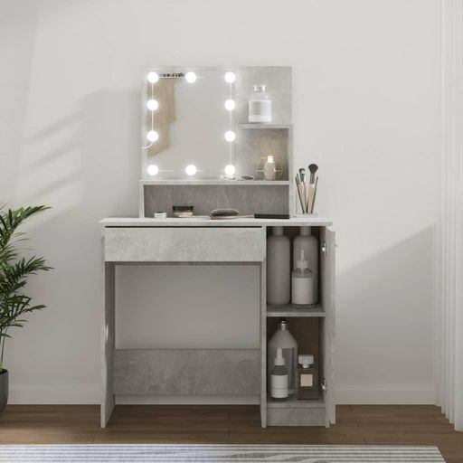 Coiffeuse avec LED Gris beton 86,5x35x136 cm