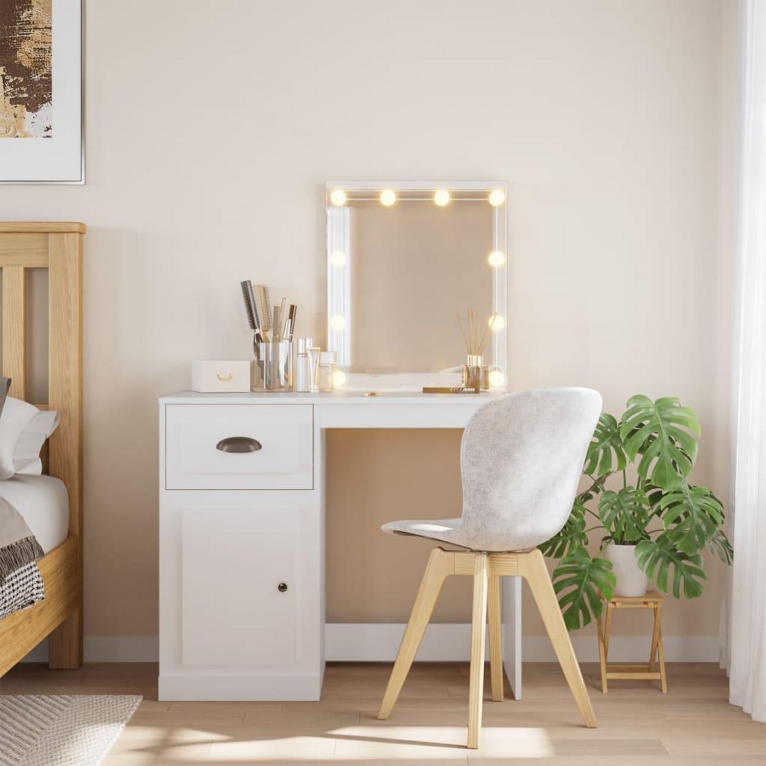 Dotee d'un aspect intemporel et raffine, la coiffeuse avec miroir et lumieres LED est un excellent supplement a la decoration de votre chambre a coucher tout en gardant vos cosmetiques a portee de main !