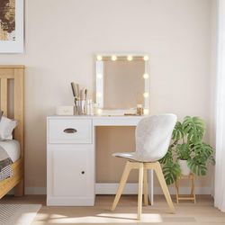 Dotee d'un aspect intemporel et raffine, la coiffeuse avec miroir et lumieres LED est un excellent supplement a la decoration de votre chambre a coucher tout en gardant vos cosmetiques a portee de main ! Materiau stable : le bois d'ingenierie est d'une qualite exceptionnelle avec une surface lisse e