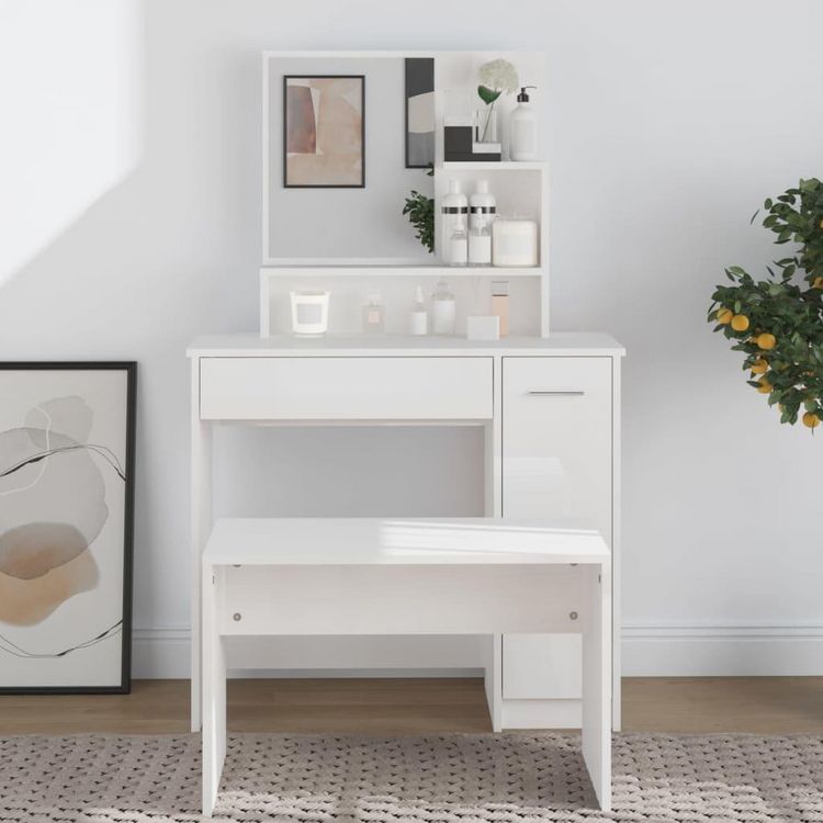 Coiffeuse avec miroir blanc brillant 86,5x35x136 cm
