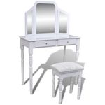 Coiffeuse avec miroir et tabouret 2 tiroirs Blanc