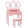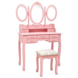 Coiffeuse avec tabouret et miroir pliable en 3 Rose