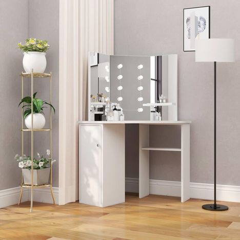 Coiffeuse d'angle table de maquillage lumiere LED Blanc clair