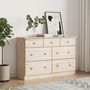 - Bois de pin massif : le bois de pin massif est un materiau naturel magnifique. Le bois de pin a un grain droit et les nœuds donnent au materiau son aspect caracteristique et rustique. Fabriquee en bois massif de pin, la commode a tiroirs est durable et robuste.