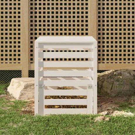 Composteur Blanc 63,5x63,5x77,5 cm Bois massif de pin
