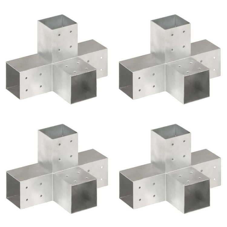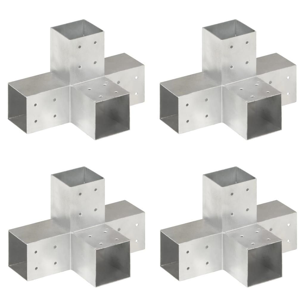 Connecteurs de poteau 4 pcs Forme en X Metal galvanise 81x81 mm