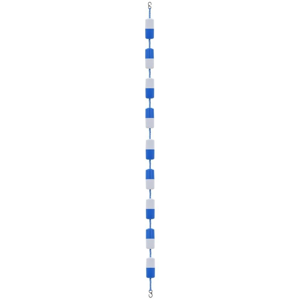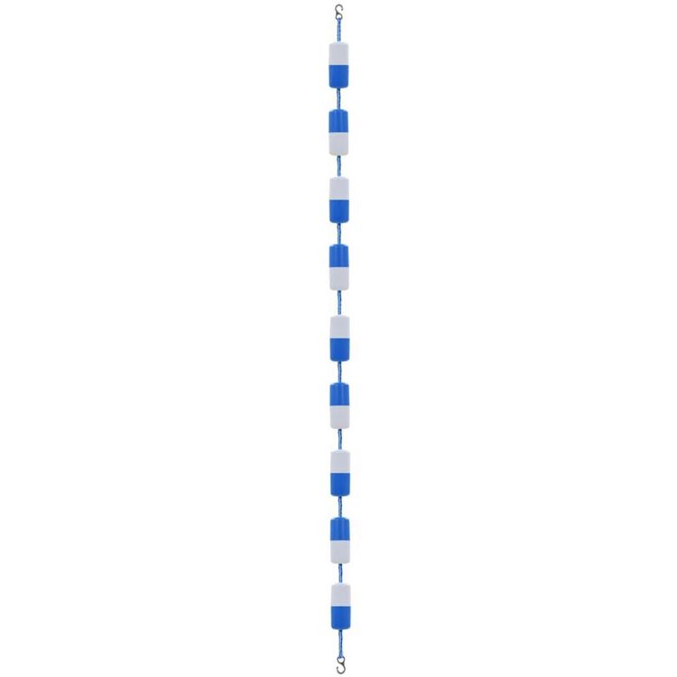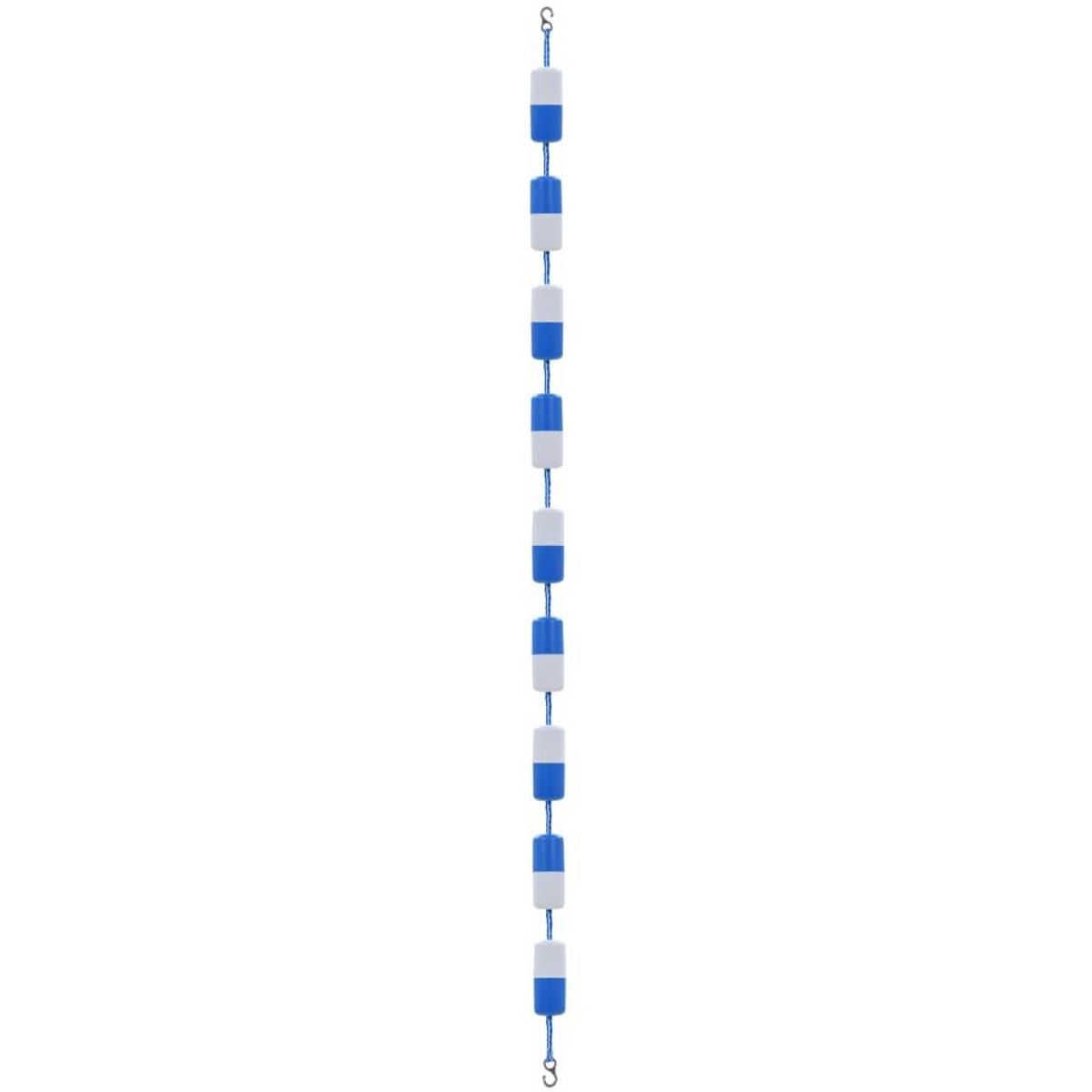 La corde de securite pour piscine est fabriquee dans un materiau de haute qualite, ce qui la rend durable pendant de nombreuses saisons. Elle est equipee de 9 flotteurs en plastique ABS resistant aux UV et au chlorure, tout en augmentant la flottabilite de la corde. Grace aux deux crochets, la corde peut etre fixee a la piscine, ce qui augmente la resistance aux impacts. En outre, le design bleu et blanc donne a votre piscine une sensation nautique altique.