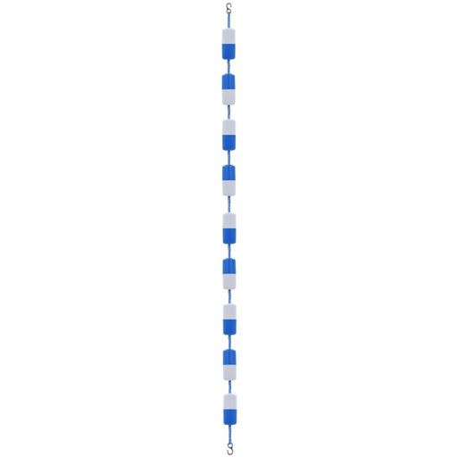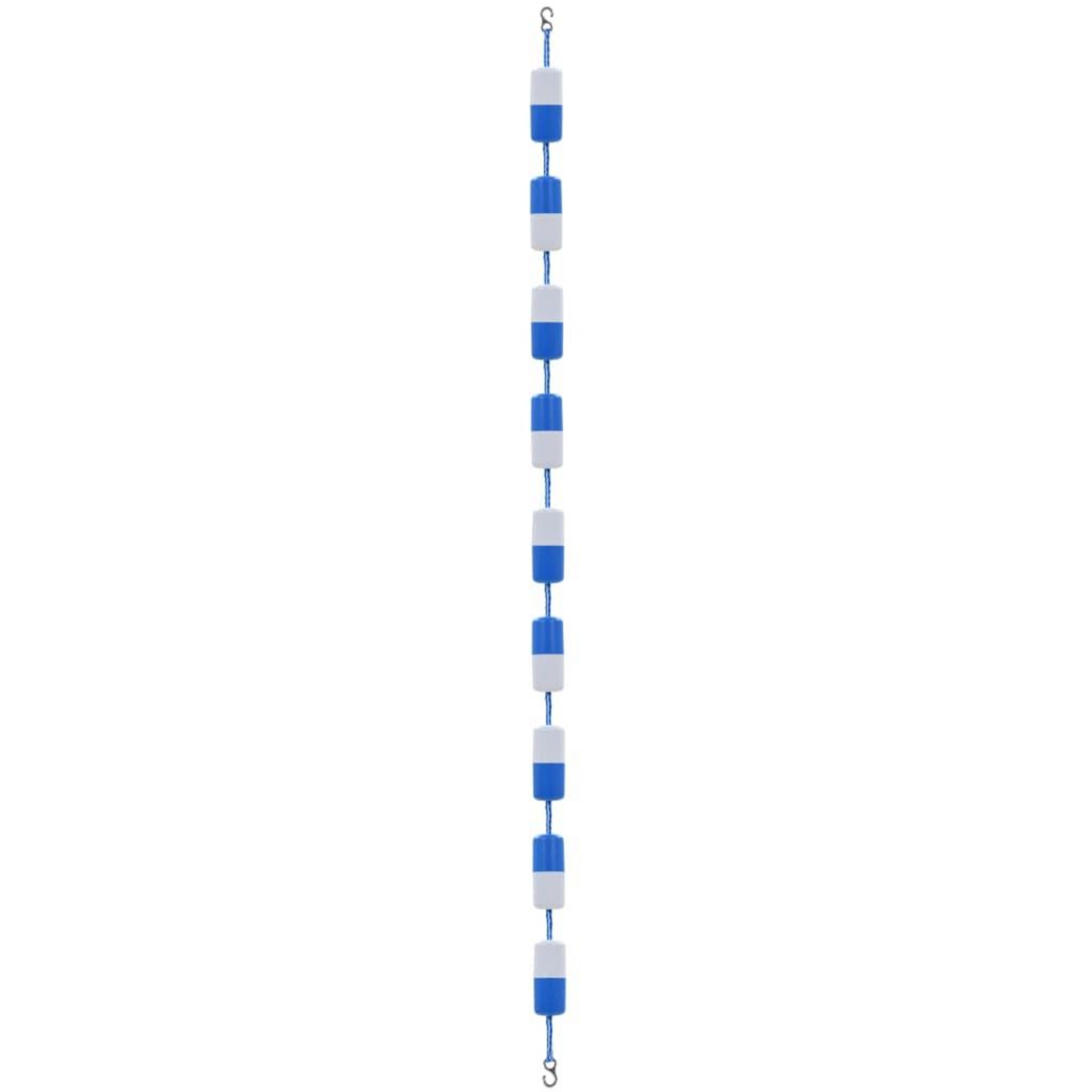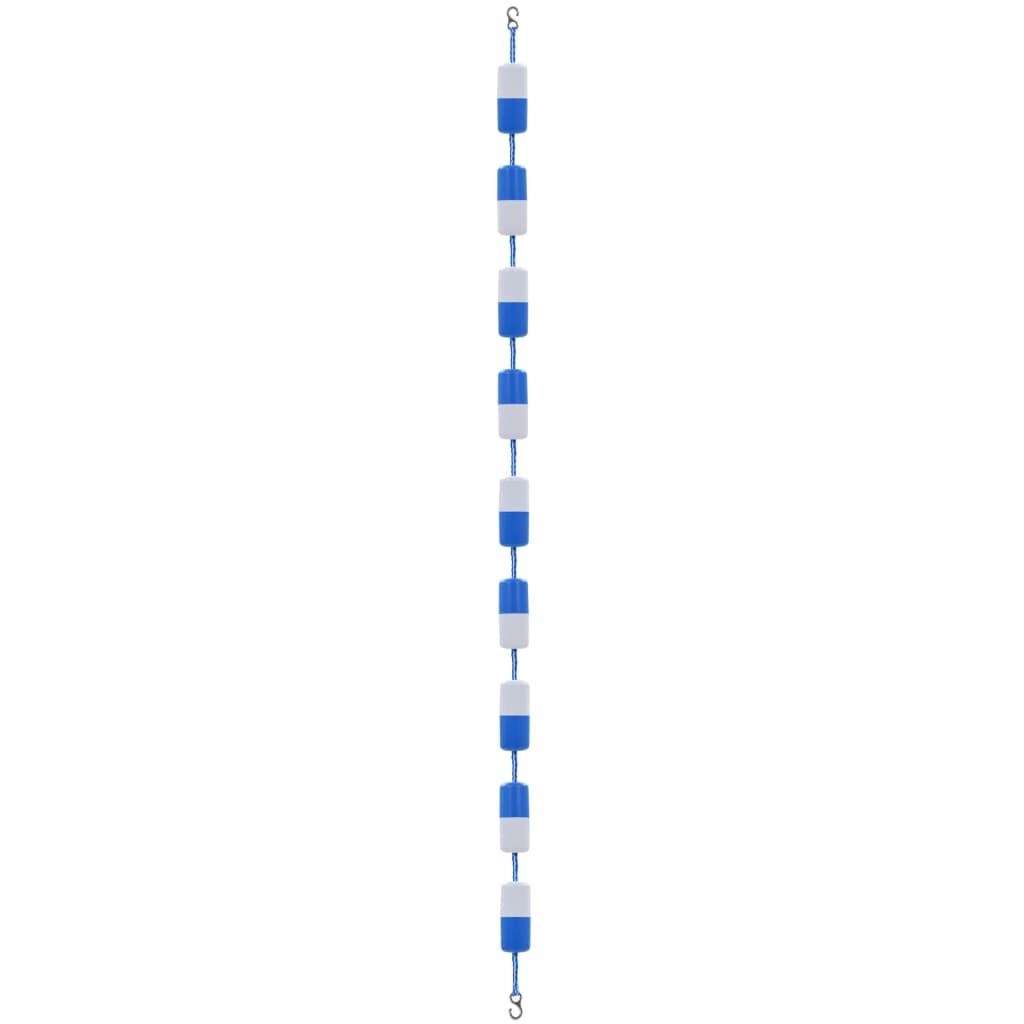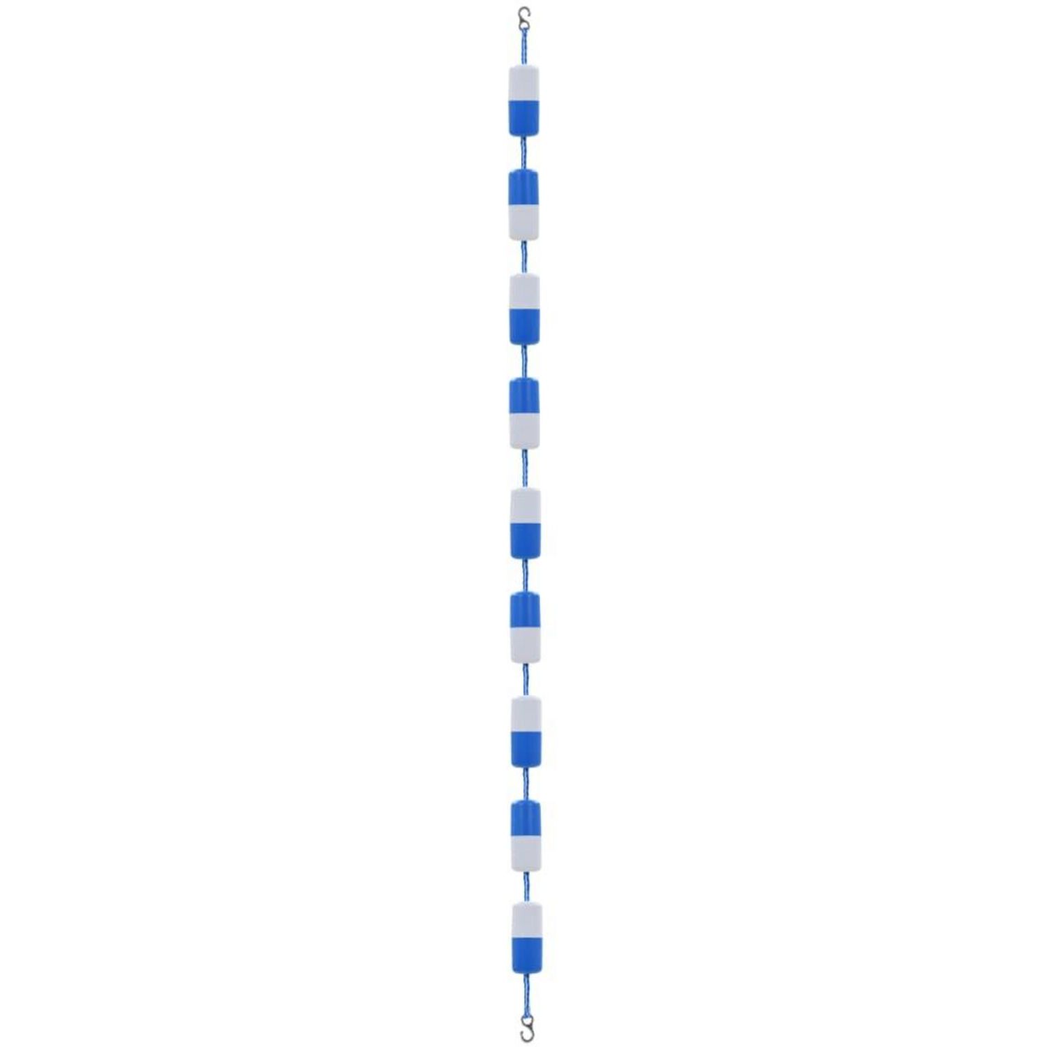 La corde de securite pour piscine est fabriquee dans un materiau de haute qualite, ce qui la rend durable pendant de nombreuses saisons. Elle est equipee de 9 flotteurs en plastique ABS resistant aux UV et au chlorure, tout en augmentant la flottabilite de la corde. Grace aux deux crochets, la corde peut etre fixee a la piscine, ce qui augmente la resistance aux impacts. En outre, le design bleu et blanc donne a votre piscine une sensation nautique altique.